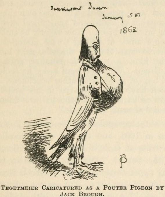 “Continuing my love for pigeons, I became the secretary of the most exclusive pigeon association, the Philoperisteron Society, which held its annual meetings in the great hall of the Freemasons’ Tavern. At one of these exhibitions I heard a voice which said, ‘Oh, here’s Tegetmeier; he will tell you all about these birds better than I can’. I turned round, and saw [my friend William] Yarrell with a stranger, whom he introduced as Mr. Darwin.”