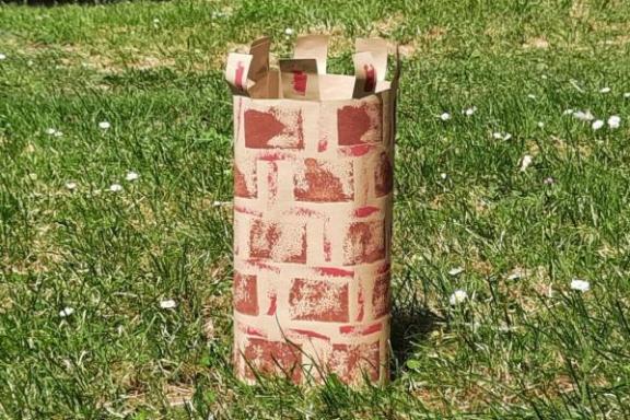 6. Wait for the paint to dry and then use sticky tape to fix the two short edges together. Your Tudor Tower should now stand up!